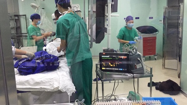 一上介入手术台,患者发生室颤,面色青紫,口吐白沫。医生立即予其除颤,胸外按压,气管插管。同时,樊民主任及姚望医生给患者进行PCI术(经皮冠状动脉支架植入术)。术中造影发现患者心脏右冠中段血管完全堵塞,经过血栓抽吸,植入支架一枚,成功开通血管。支架成功打开后,造影发现血流即刻恢复,心电图恢复窦性心律,把钱先生从死亡线上拉了回来。整个造影及手术过程中,患者反复发生室颤情况,手术在持续胸外心脏按压、反复电击除颤达39次。