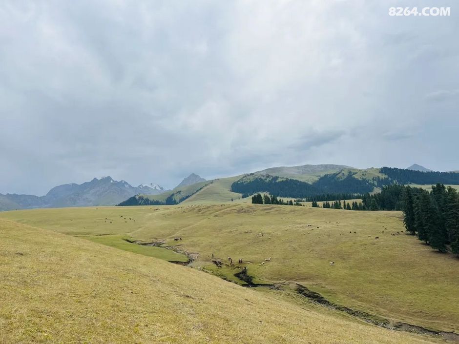 高山、草甸、牛羊、云杉、河流,一样的配方,仿佛又回到了乌孙古道。