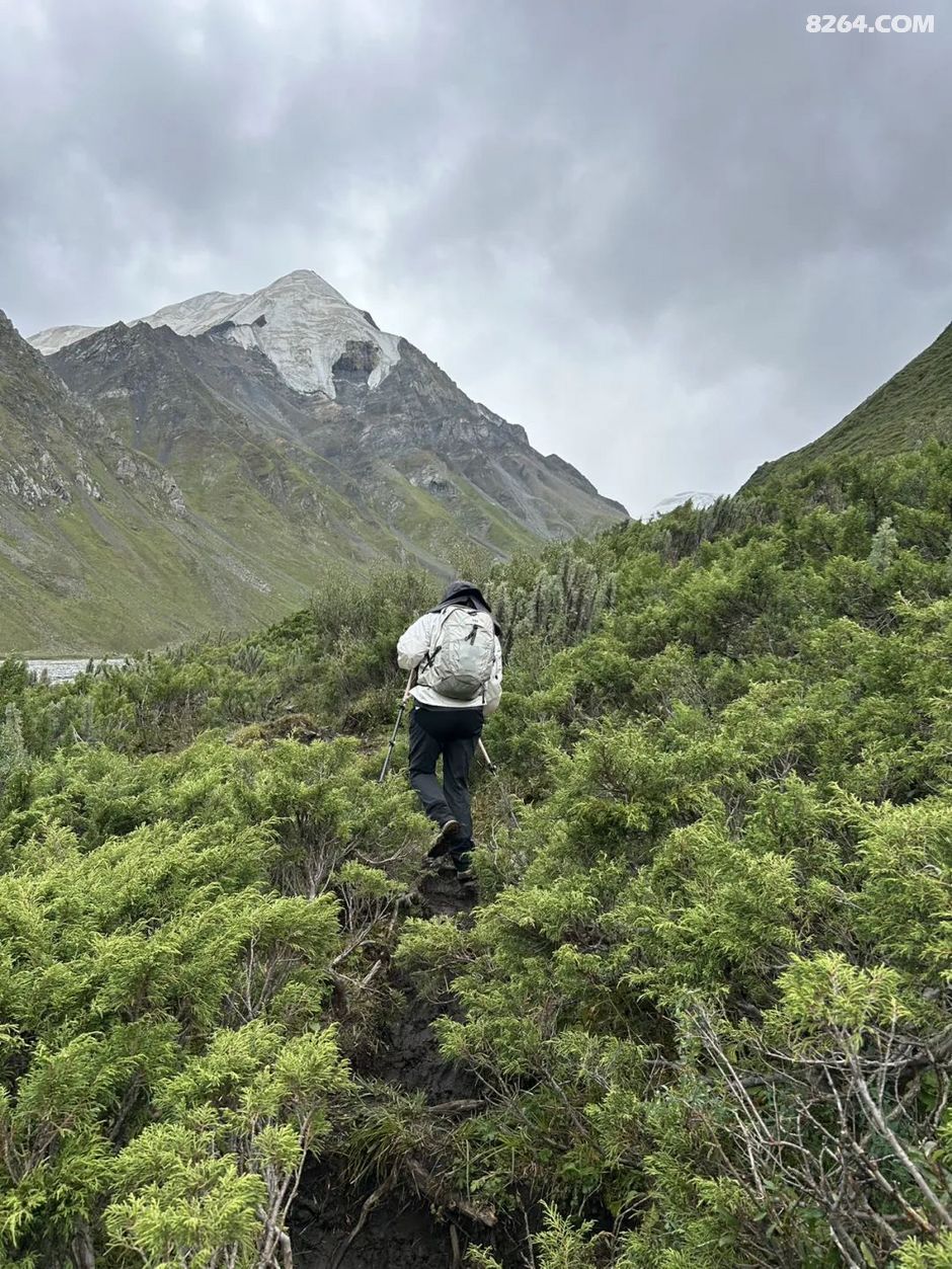 下到谷底的时候,雨停了,天空渐渐露出一丝高原的蓝,我们跟着向导从左边走牧道,看清了方向后便抄近路直切而上,路是近了,但体能的消耗也是极大的,丁丁几次都喊着我要骑马。