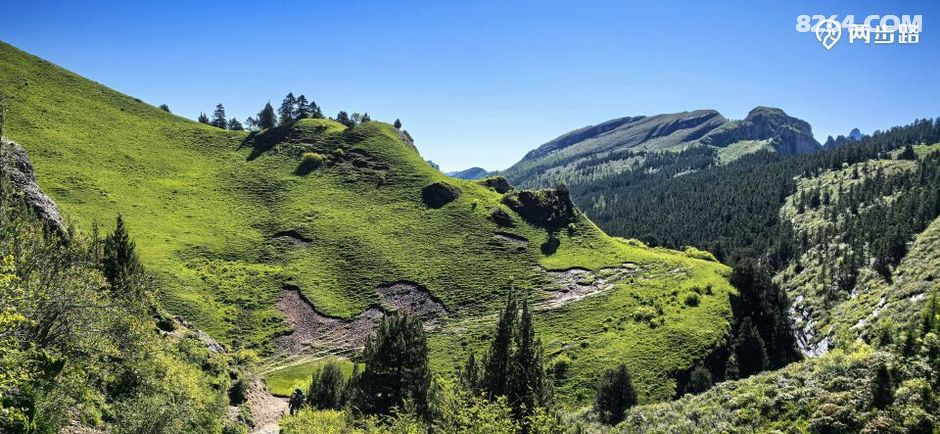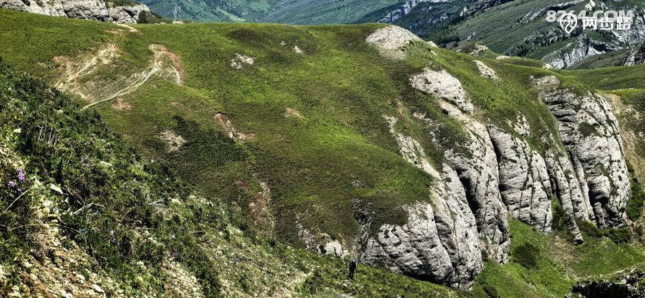 一早就是爬坡,碧绿碧绿的草甸映入眼帘。