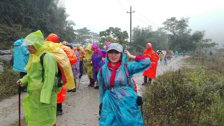 虽说景色一般,但下雨路滑,仍是把大家累得够呛。
