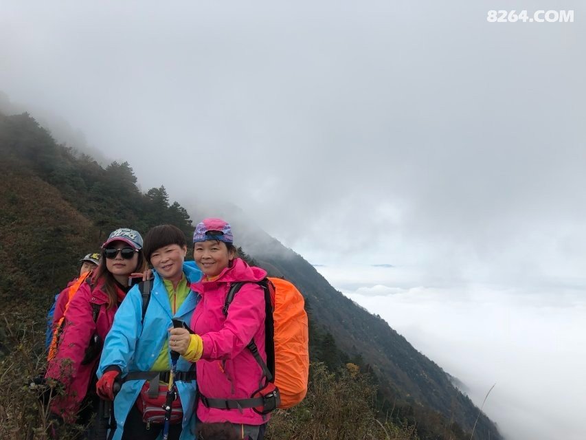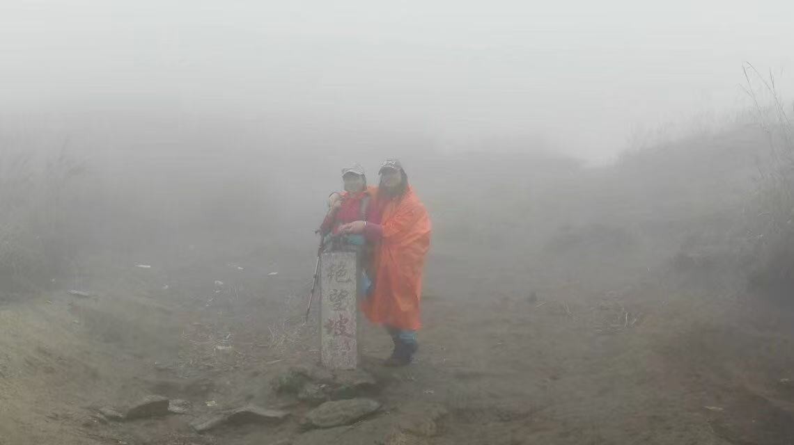 从绝望坡到发云界,路已完全隐没在夜雨中。那双迪卡侬鞋让我吃尽苦头:鞋浅、打滑,灌满泥水,让我连摔三跤,只能依靠沉底鱼的搀扶前行。此时,队友相逢因没带 头灯,在三百米外不敢移动,恳求我回头用头灯为她照路。我刚脱身,实在不愿再爬回陡坡。正用袖子擦去脸上雨水,犹豫之际,后方传来人声,同队的人恰好经过,将她带了下来。雨更猛,风更厉,在又冷又饿、一片漆黑的困境里,和相逢姐姐相逢在绝望坡,拍了一张合照。天黑路滑 饥