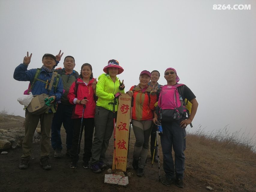 我用对讲机向山下的群主落花生汇报后,他迅速赶来勘查,随即果断下令:全体下撤,改走左边那条我们最初因景色平平而放弃的路线。近三个小时的摸索与尝试,最终以一场无奈的“战略转移”告终——队伍前队变后队,浩浩荡荡地回到了最初的起点。没看到 高山草甸的辽阔雄壮。只有一片狼藉的垃圾,有的快堆成小山。我义愤填膺的拍下照片说要谴责这些不爱护环境的人。 饿得两眼发昏时,沉底鱼替我分担了部分 背包重量。我发现他包里竟有神秘的咸鱼!饥饿面前哪还顾得上挑剔,平日不碰咸鱼的我,此刻也猛吃了几大块。靠着这股“咸鱼之力”,我一鼓作气爬上了海拔1690米的好汉坡。正想和坡名木牌合个影,沉底鱼却一脸嫌弃:“这牌子太丑,配不上你刚才的狼狈样儿!”得,好汉形象就此泡汤。