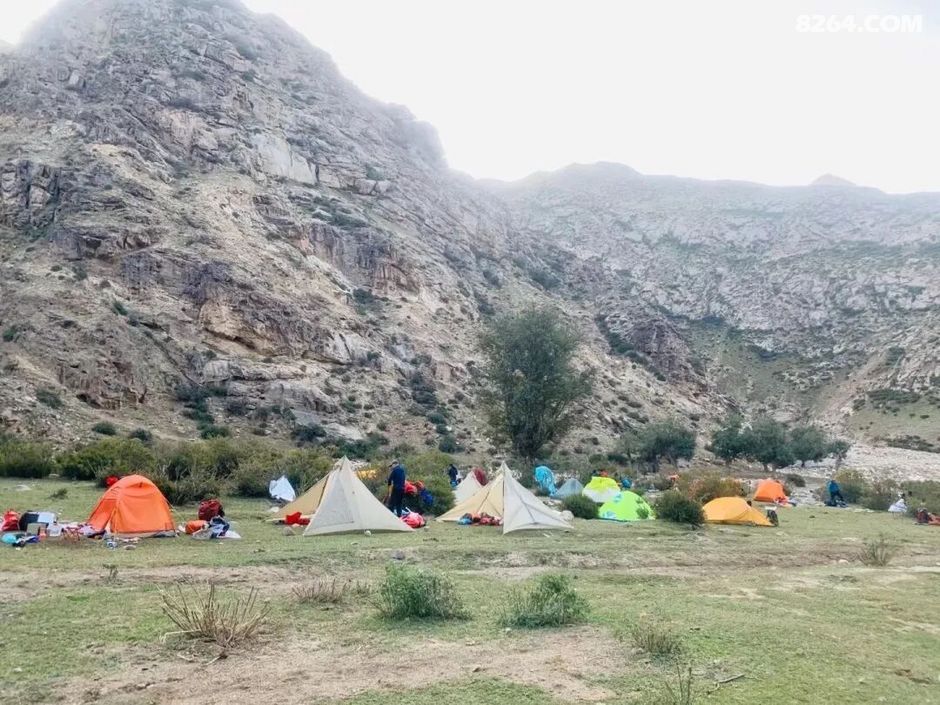 徒步了5个多小时后,大约晚上7点左右,大家陆陆续续到达今晚的宿营地:河谷中一片平坦的草地。