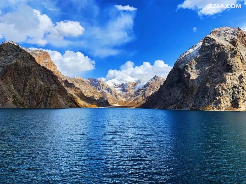 远处覆盖着冰雪的山峰就像一尊静默的神祇,在阳光照射下透出令人炫目的肌理。