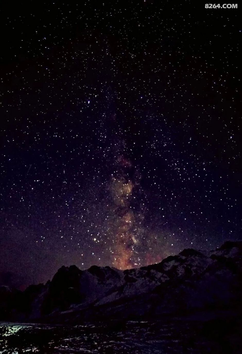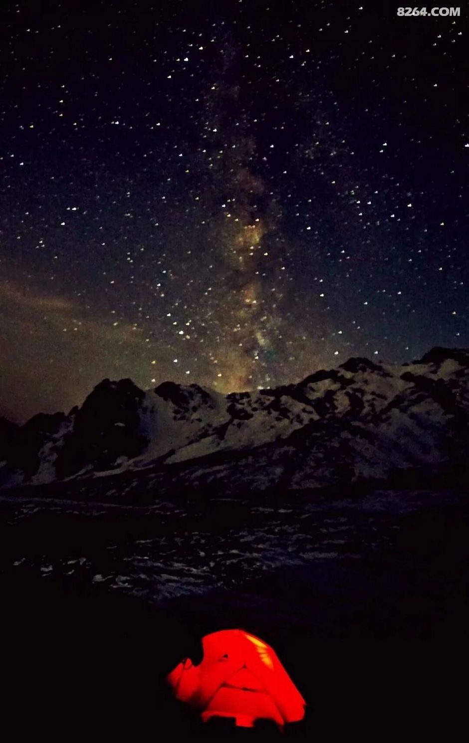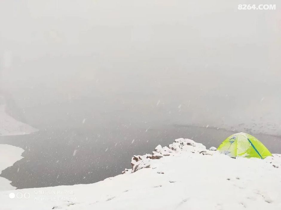 起夜的老白看着我的帐篷亮起了灯,于是拍了一张被雪覆盖的我的温暖小窝……