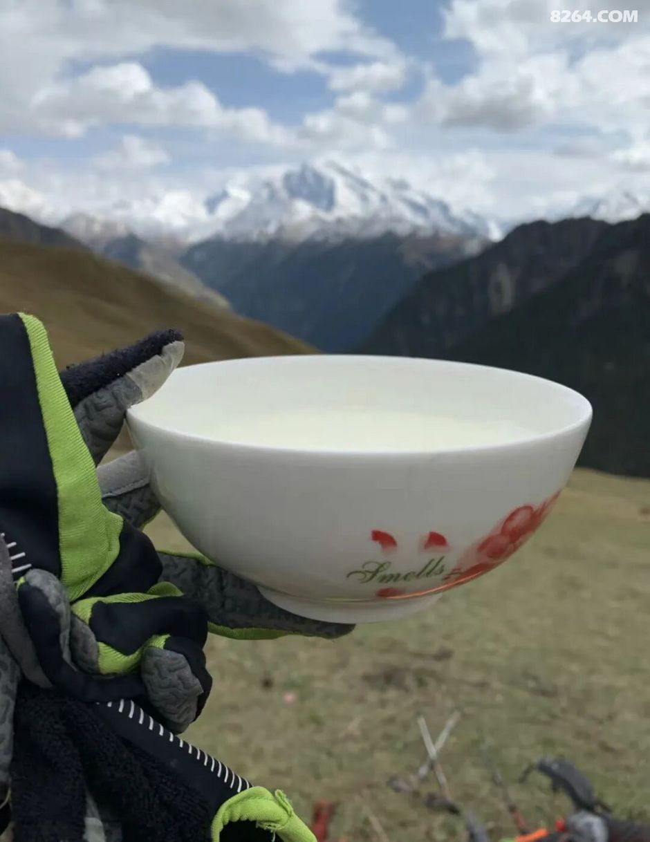 爬到一处山腰时,我们遇到了一户哈萨克牧民。我走进小木屋跟女主人买了一碗新鲜羊奶:一碗下去,天高地迥,觉宇宙之无穷、念天地之悠悠,酣畅而尽兴!