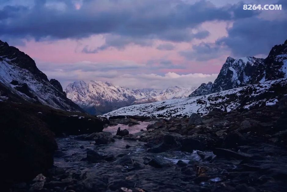 清冷的雪山上,落日余晖显得格外凄美、动人……