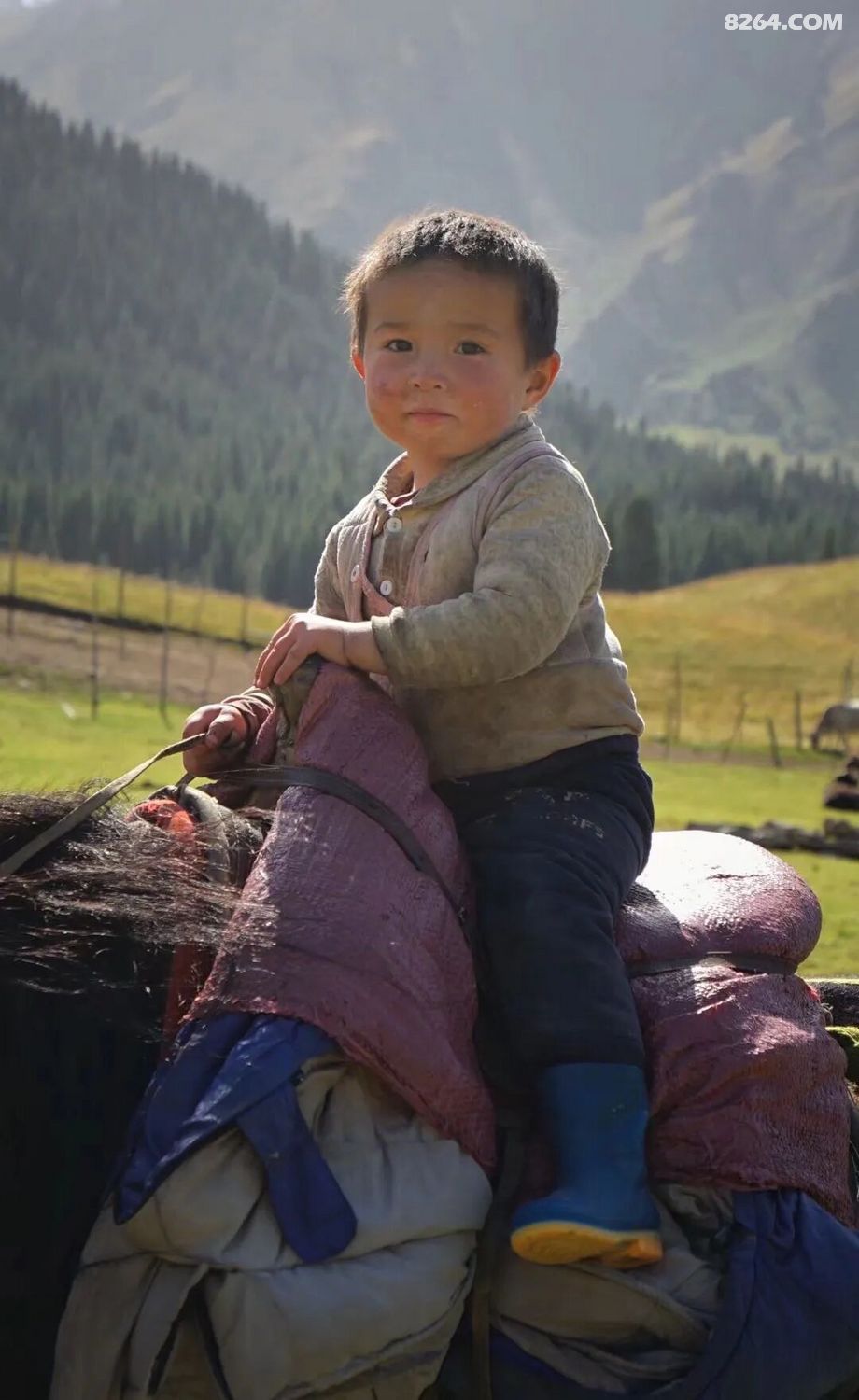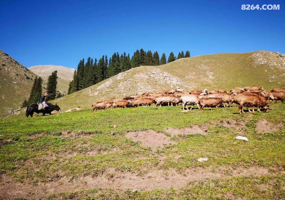 牛、羊、马接踵而至,我们经过了一个又一个牧场,遇见了一位又一位哈萨克牧民,浓浓的烟火气息扑面而来! 甚至我们还遇见了一位牧民骑着一头牛赶着一群羊……
