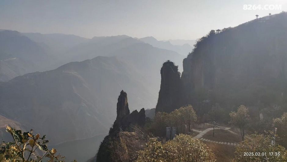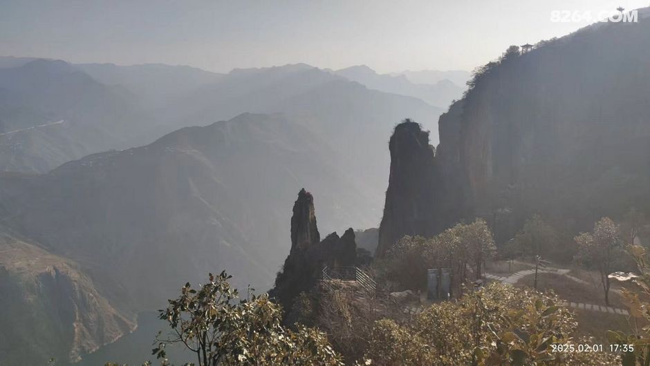 峡谷风光让人叹为观止。远处群峰连绵起伏,近处悬崖峭壁陡然升起,一条河流蜿蜒曲折地穿流而过,在阳光照射下显得波光粼粼。这峡谷像是大自然的一道裂缝,却也孕育着无数的美景。