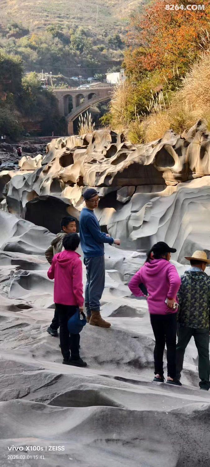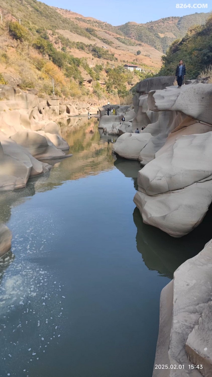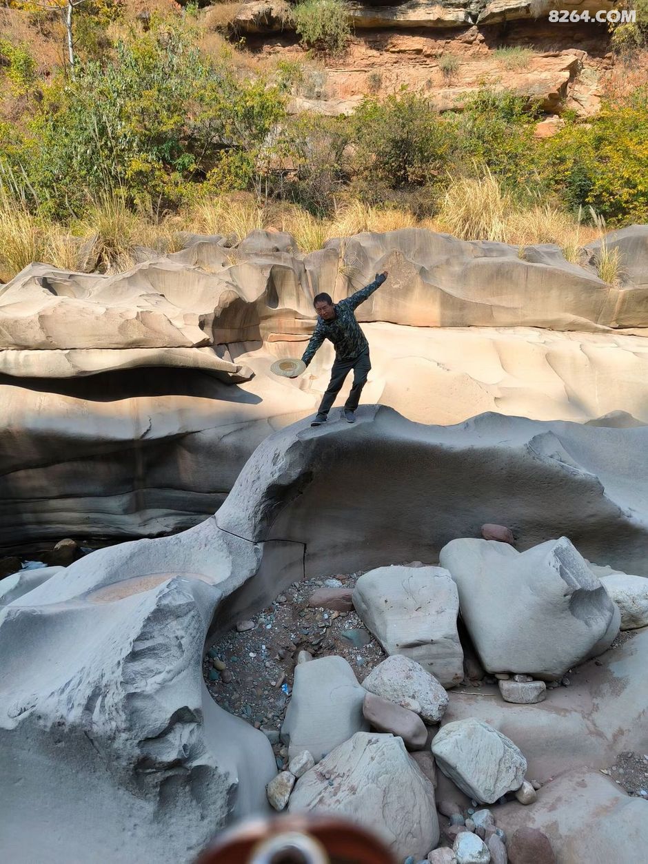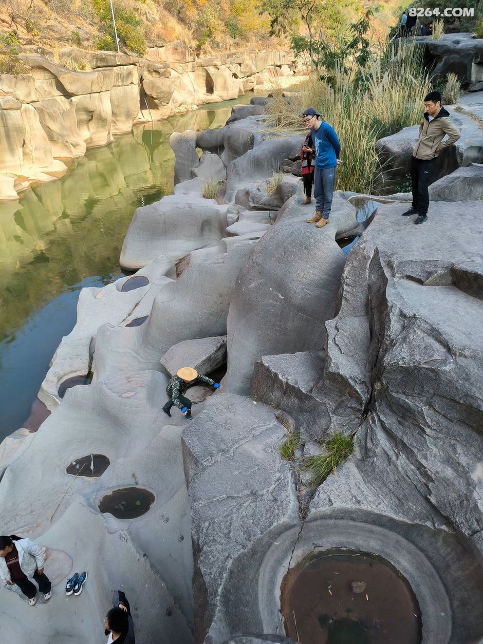 河流峡谷地貌也是一大奇观。河床被侵蚀得非常平滑,裸露的大石头像是大自然的艺术品。周围的人们在这里活动或休息,他们享受着这片土地带来的宁静与惬意,仿佛与大自然融为了一体。