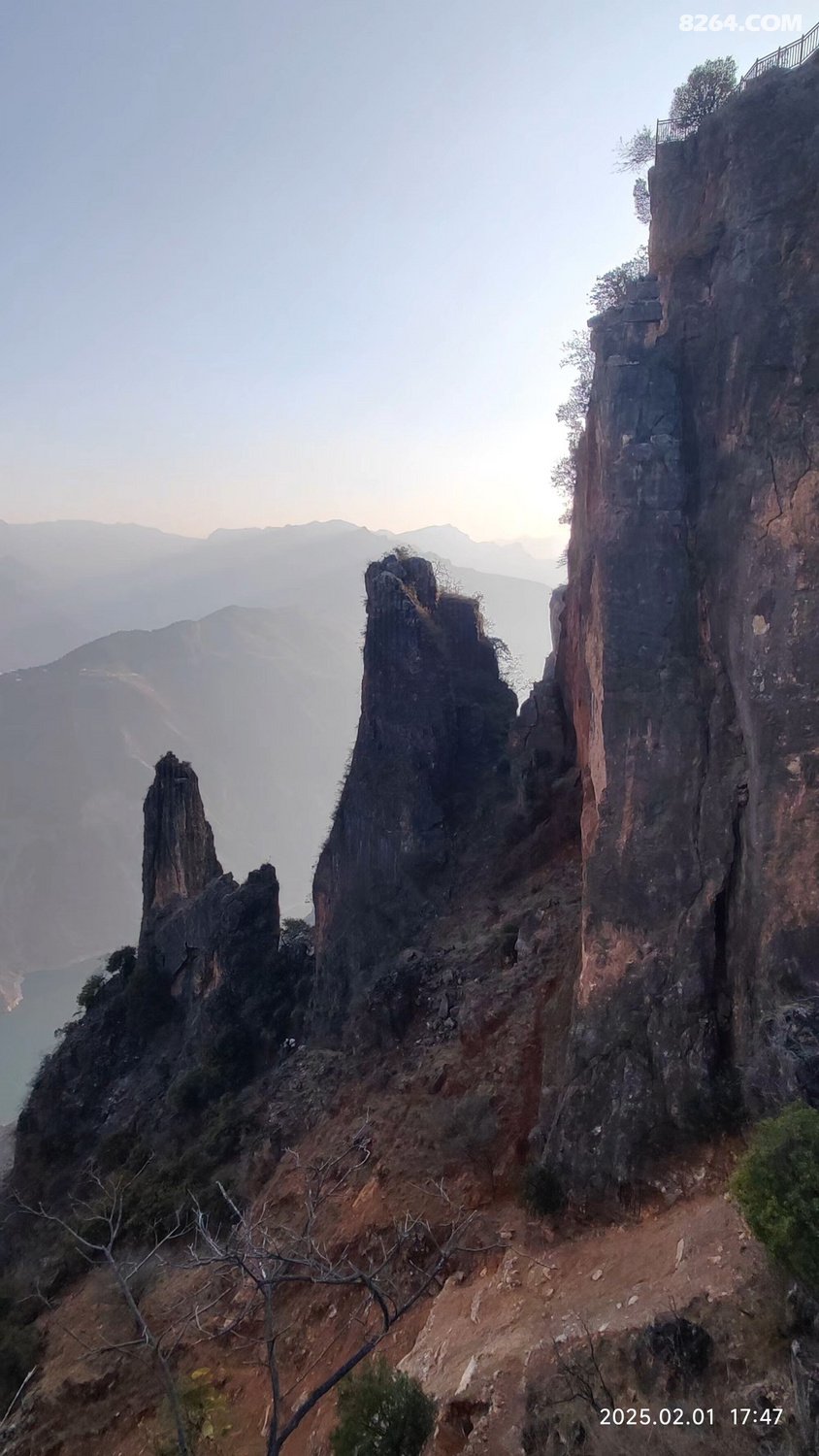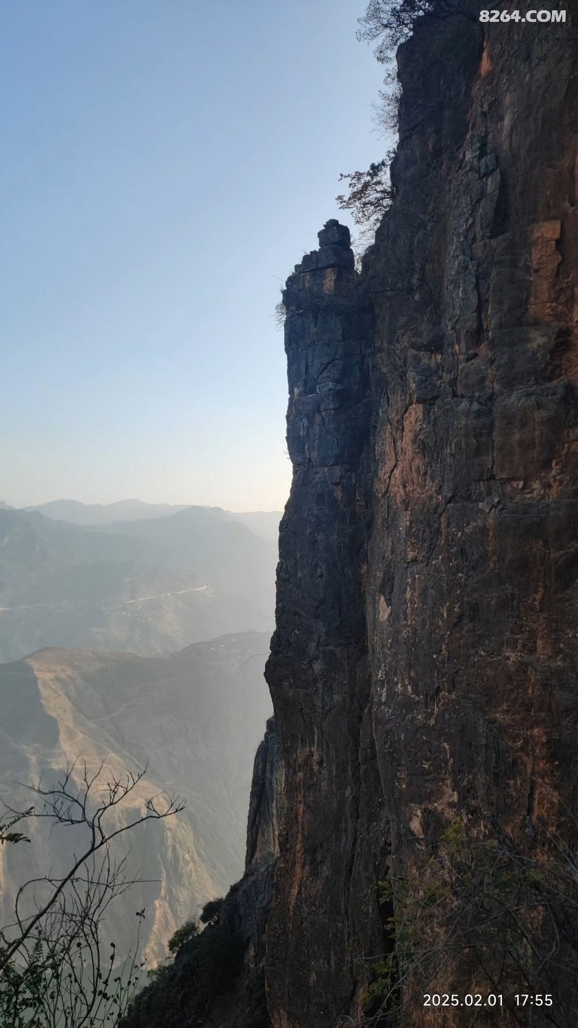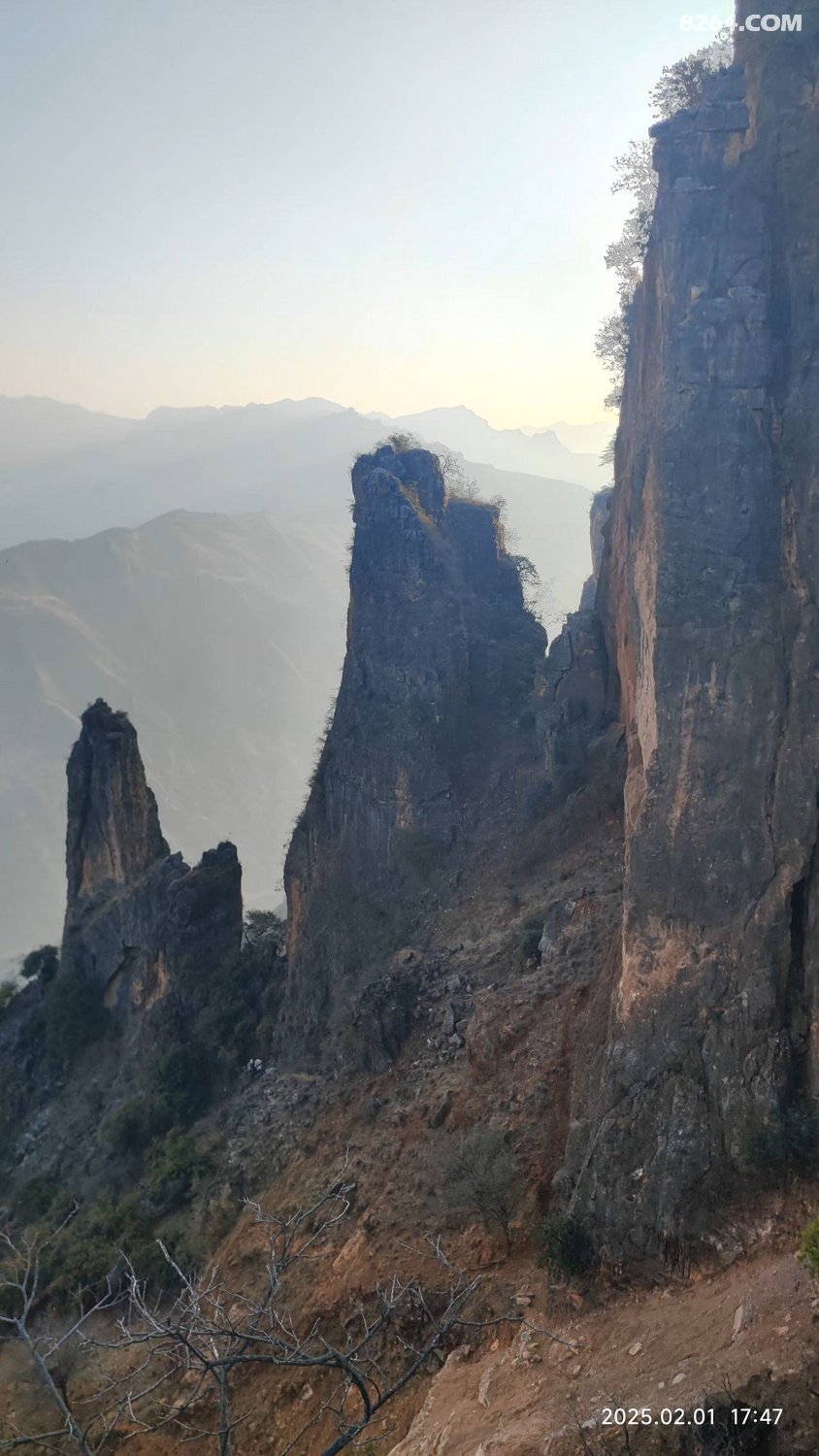 继续前行,我看到了一个山峰景观,在薄雾的笼罩下,它显得更加神秘而壮观。那山峰像是一个沉默的巨人,静静地守护着这片土地,岁月在它身上留下了痕迹,却也赋予了它一种独特的魅力。