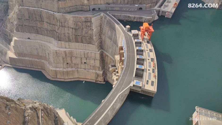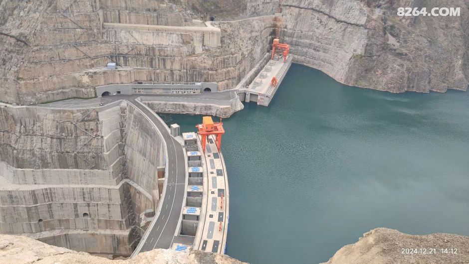 一个水电站大坝全景视角展现在眼前,高耸的大坝横跨江面,拦截住了奔腾而来的江水。它像一道坚固的防线,守护着下游的安全。我站在这里,思绪飘远,仿佛看到了无数个日夜,建设者们挥洒汗水的身影。正是他们的付出,才让这个伟大的工程屹立不倒。