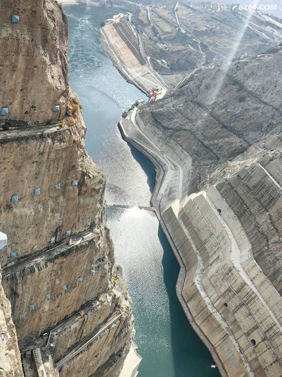 一幅壮观的大坝全景照片映入眼帘,大坝高耸入云,两侧山崖陡峭险峻。我仿佛置身于其中,感受到了那份雄伟与壮丽。这里的每一寸土地都承载着历史的记忆,每一座山峰都在默默诉说着过去的故事。我静静地欣赏着眼前的美景,心中充满了敬畏之情。