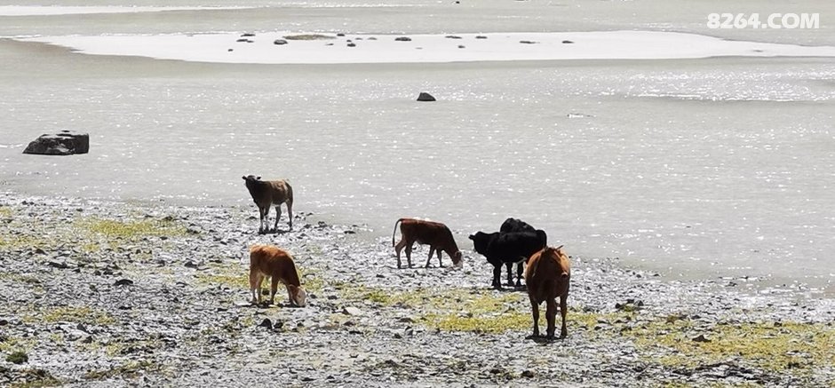 山谷牧场,邂逅牛群(拍摄时间:7:54) 背负沉重、衣着厚实,加上步履急促,不久便浑身燥热。见有大石,我们赶忙卸包脱衣。