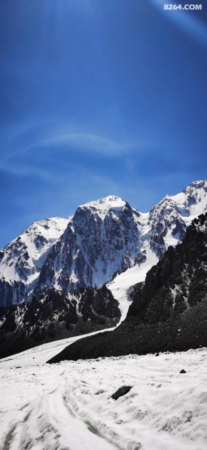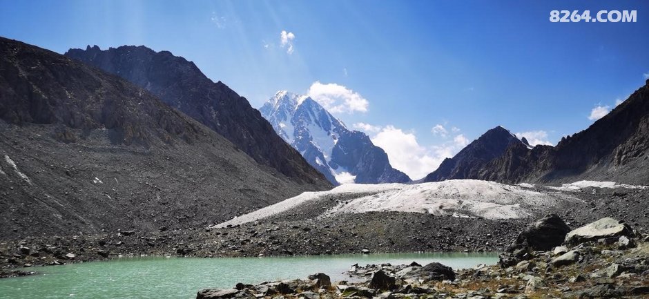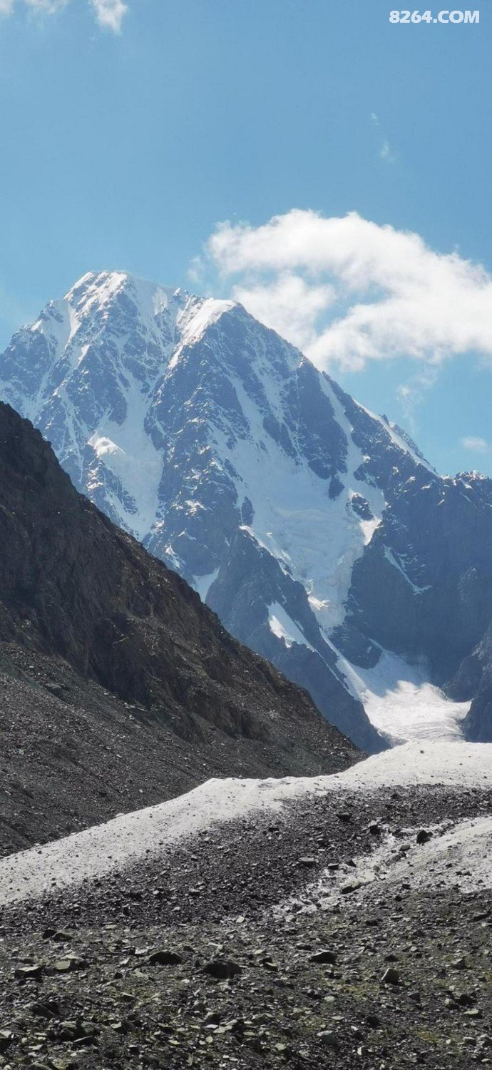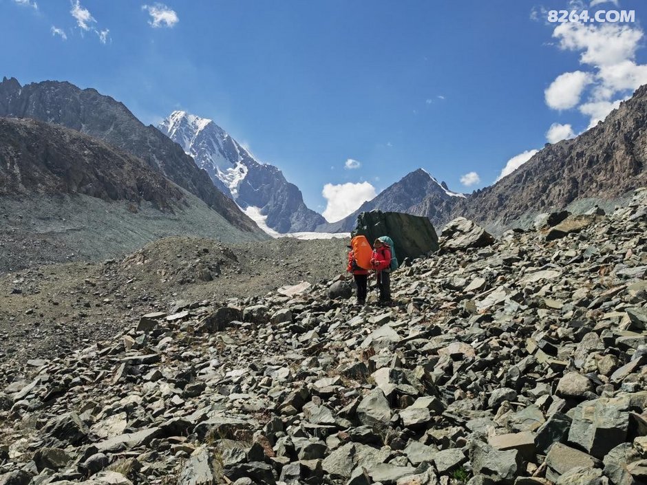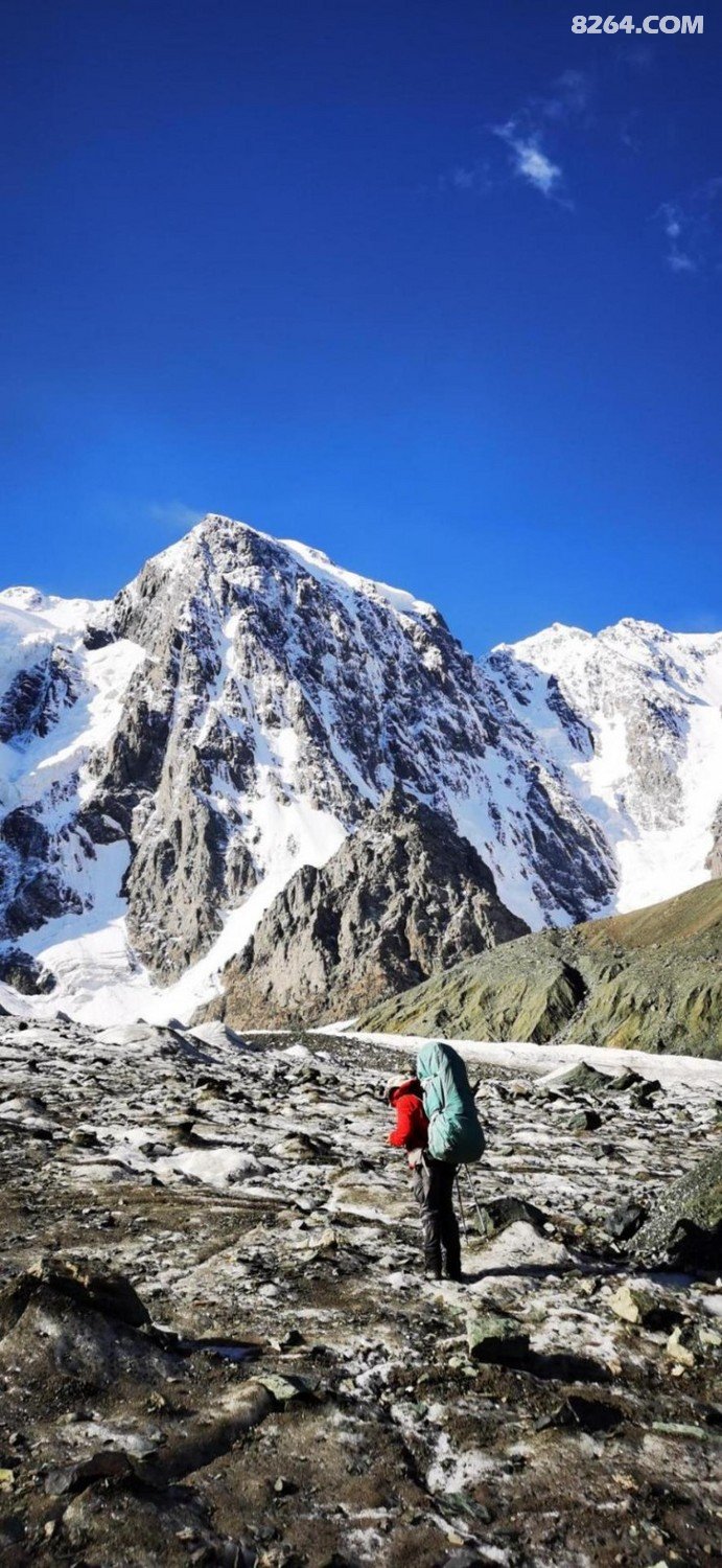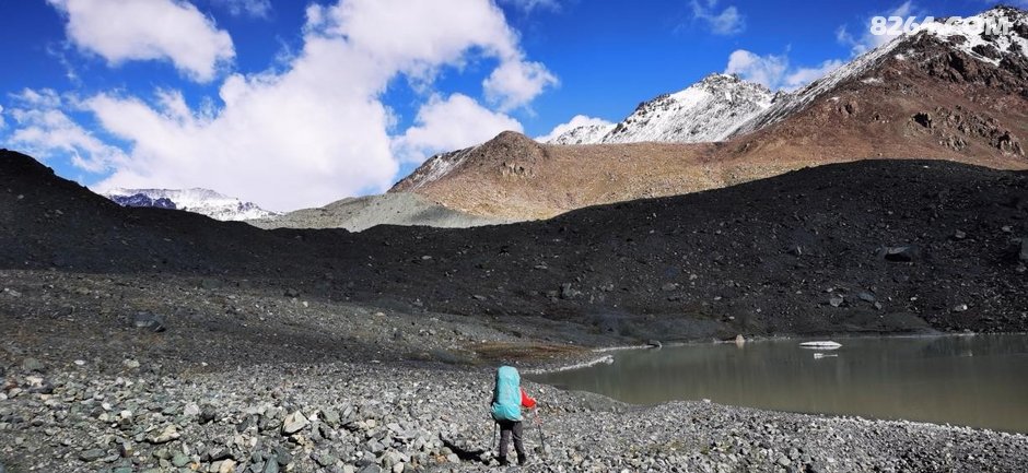 回拍:冰川萎缩露出冰碛石(拍摄时间:16:02 冉苒 ) 天空湛蓝如洗,蓝得近乎虚幻,唯有雪峰顶上飘着几团白云。阳光灼人,晒得人昏昏欲睡,但我们不敢耽搁——简单达坂还隐在蜿蜒的冰川尽头,不见踪影。
