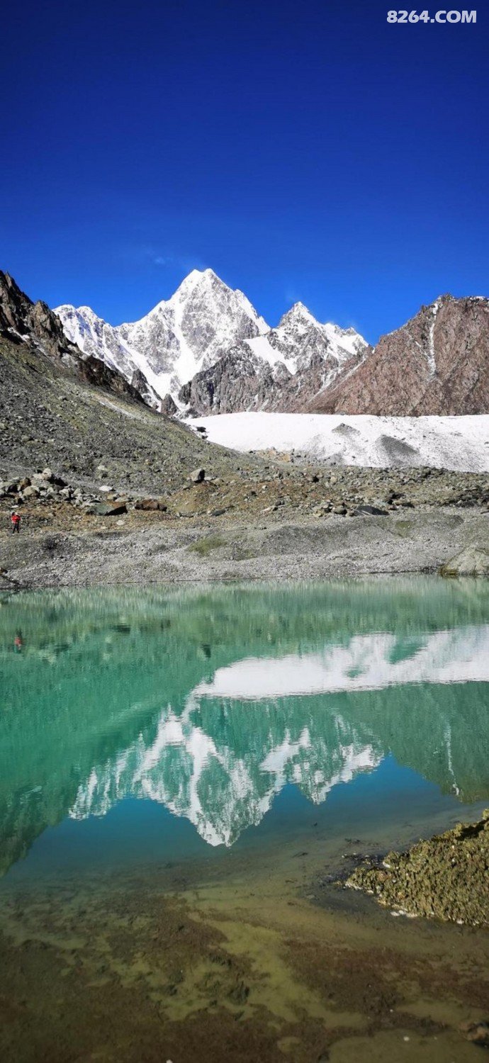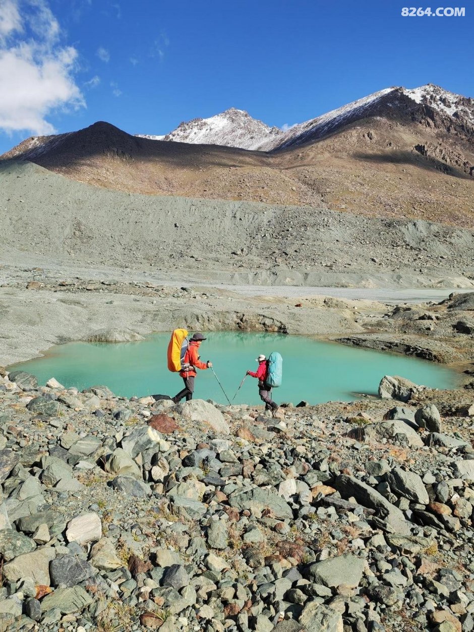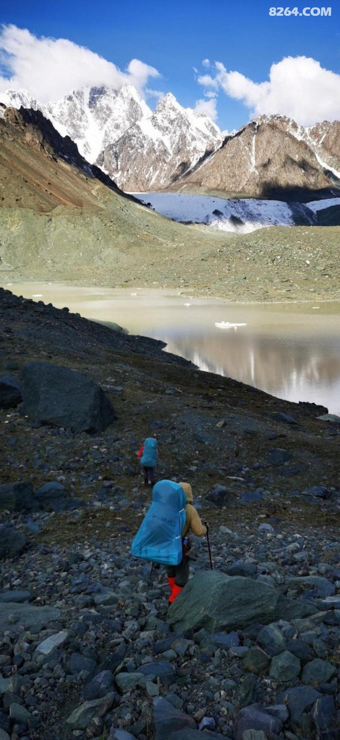 直上冰碛缓坡(拍摄时间:10:06) 冉苒、咖啡和我,都不由自主地被这一池碧水深深吸引。我们绕着湖岸缓缓踱步,不断变换角度,试图将蓝天与雪峰的倒影完美地摄入镜头,定格这片天地间最清澈的瞬间。
