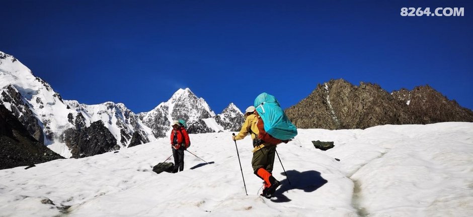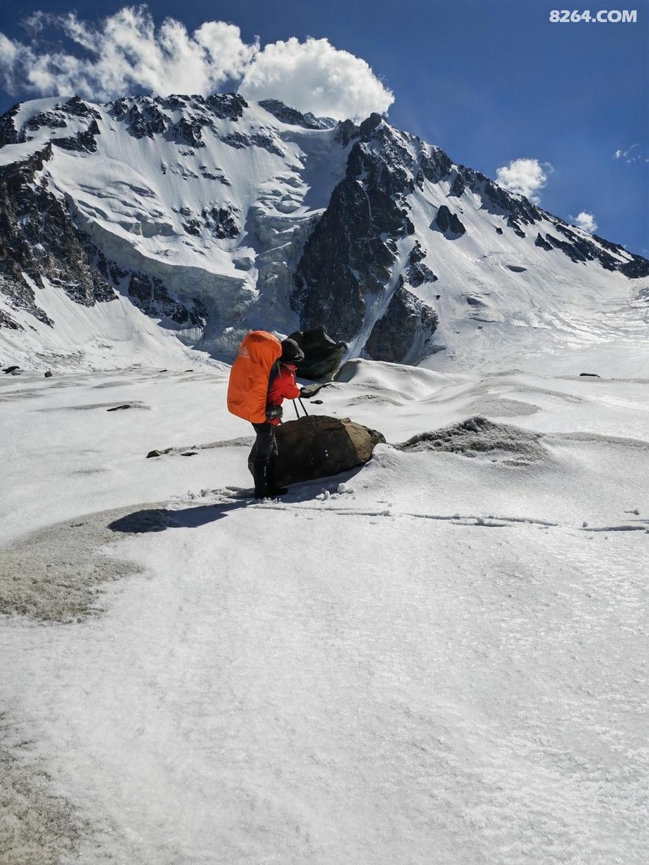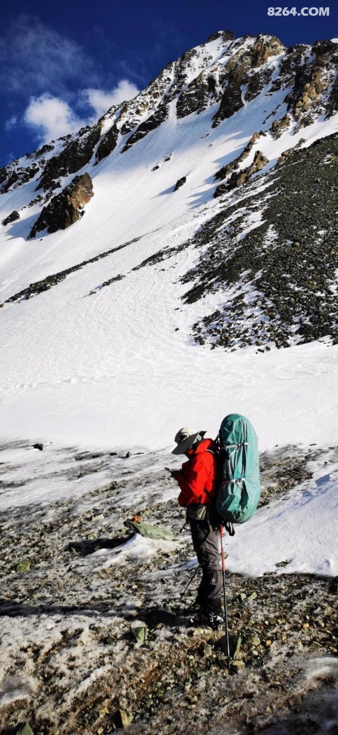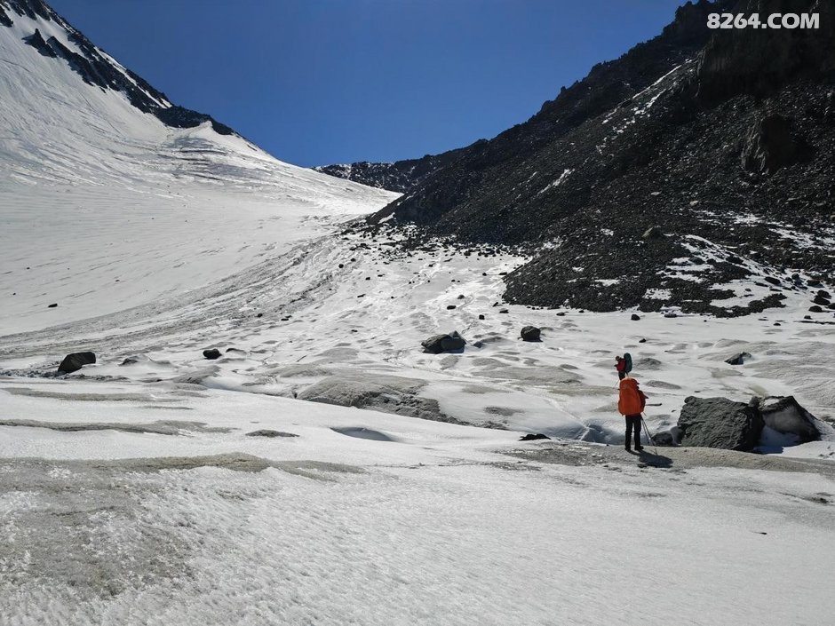 回望南侧,方才艰难跨越的那两条冰川,在视野中竟又连成了浑然一体。直线距离看似并不遥远,却让我们费尽九牛二虎之力——原来迂回辗转这许久,只不过是为了抵达眼前这又一条冰川的起点。