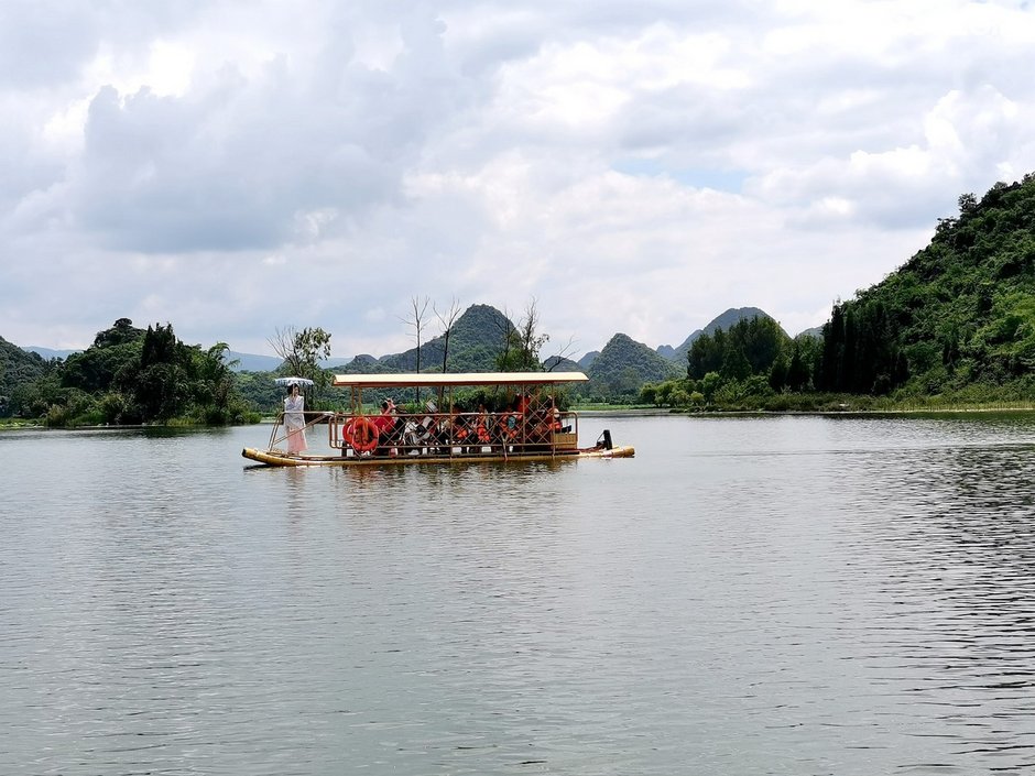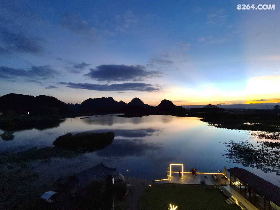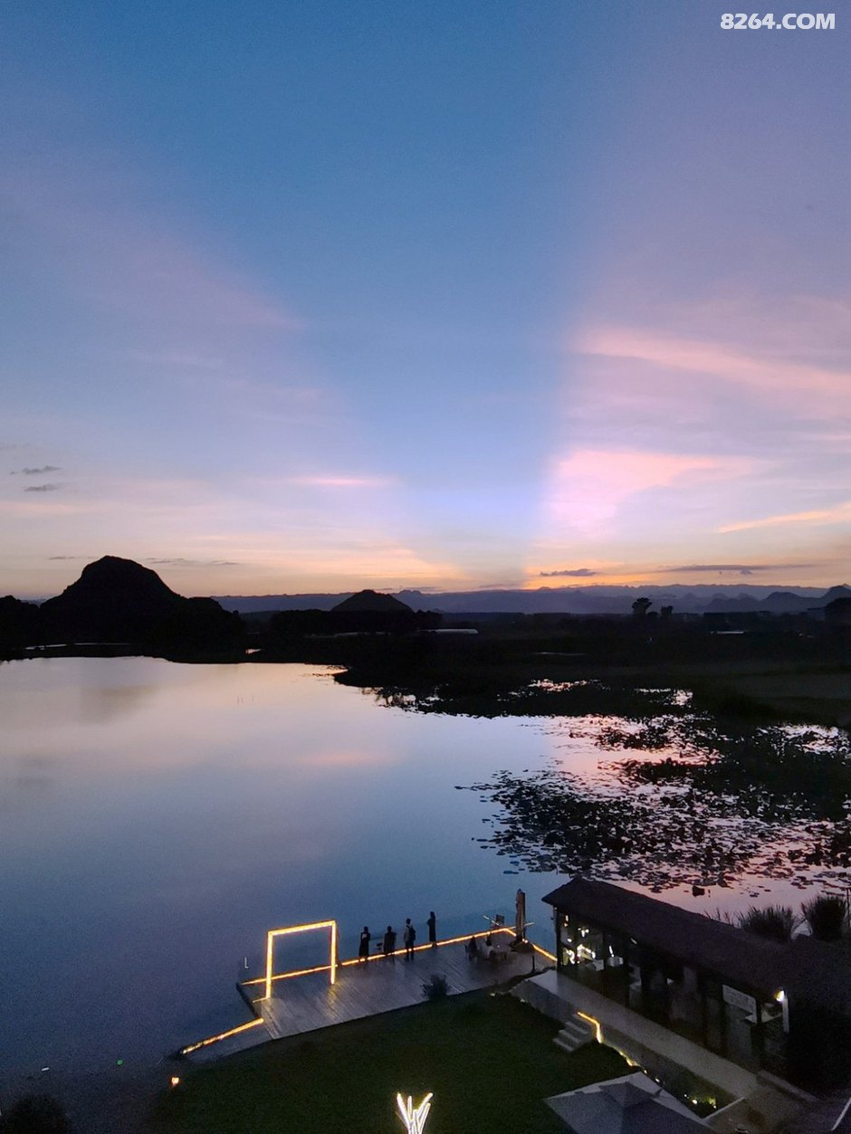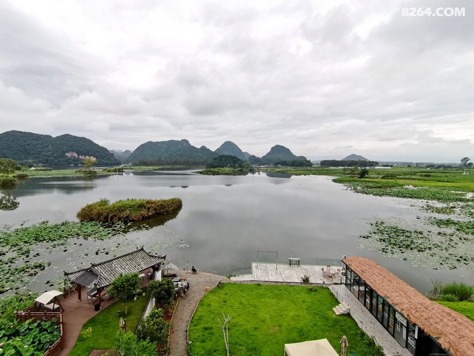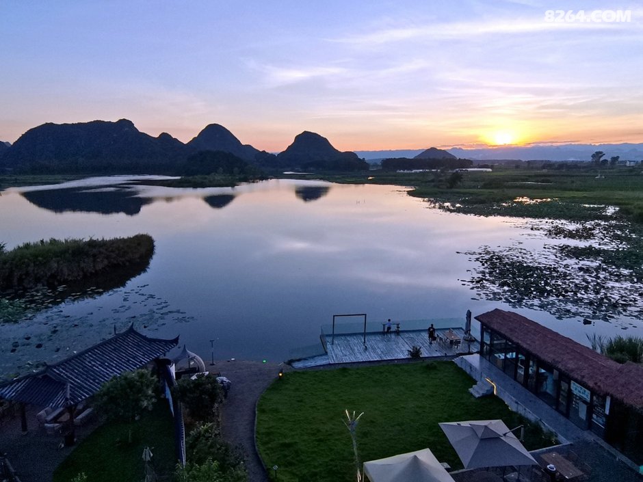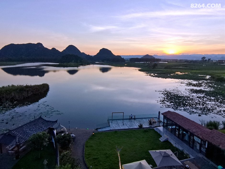 起得晚,没有看日出,因为后院的普者黑湖面对西边。普者黑景区最佳日出观景点在青龙山,就在我们住的普者黑湖对面但是需要天不亮就起床赶路,还要爬山,实在是懒。