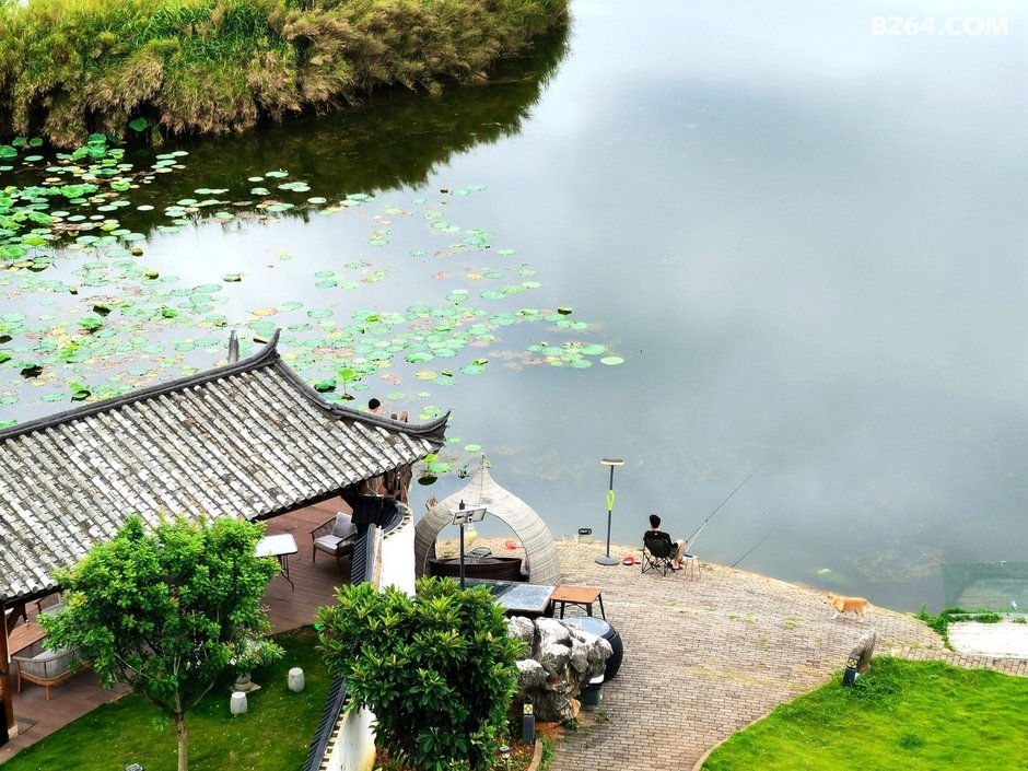 客栈吃过早餐,到后院湖边看看风景。然后驾车驶往落水洞观景点。