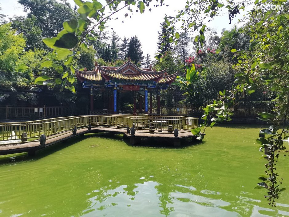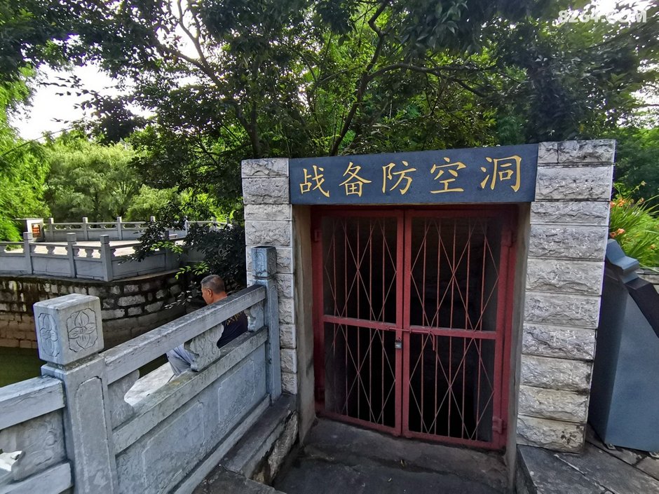 日本飞机轰炸后留下的弹坑,现在改造成了电站内的水景