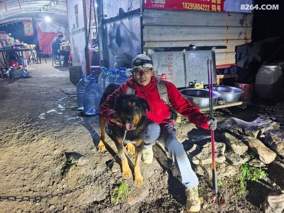 五台山是个神奇的地方,大黄陪我去八公德水可能是因为我在西台的主动投喂,南台的巴克穿越漆黑的松林送我到宽滩真的被暖到。我们几个到南台大概是晚上:,比预计的晚了些,天已经黑透了。稍作停留准备下到宽滩完成朝台。没走多久一条带着铁链的大黑狗跑过来