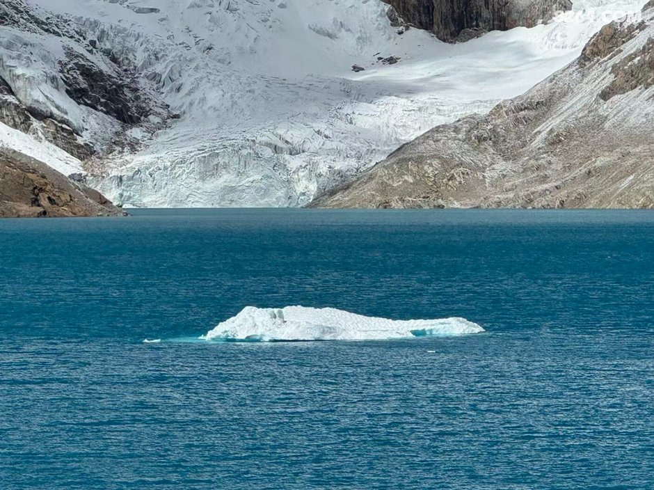 走了约3公里多,就远远在山脊上看到了浮冰湖,和网上看到的还不同,原来里面的浮冰那么大一坨,跟一座座小山似得,还是很震撼的
