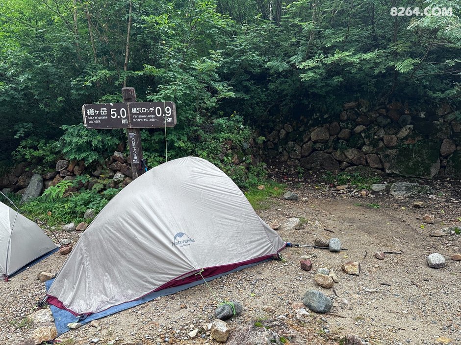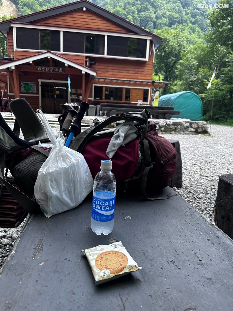 因为山岳国立公园内严格的营地管理,只能指定位置扎营。枪平小屋之后就只有枪岳山庄营地了,没有把握天黑前完成。因此第一天最佳选择是新穗高口进山,走右俣林道到枪平小屋,酷暑天气只走2小时可小小热身一下。结果一贪心走了左俣林道(原因后面再说),硬生生折腾了7个多小时才到枪平小屋营地。