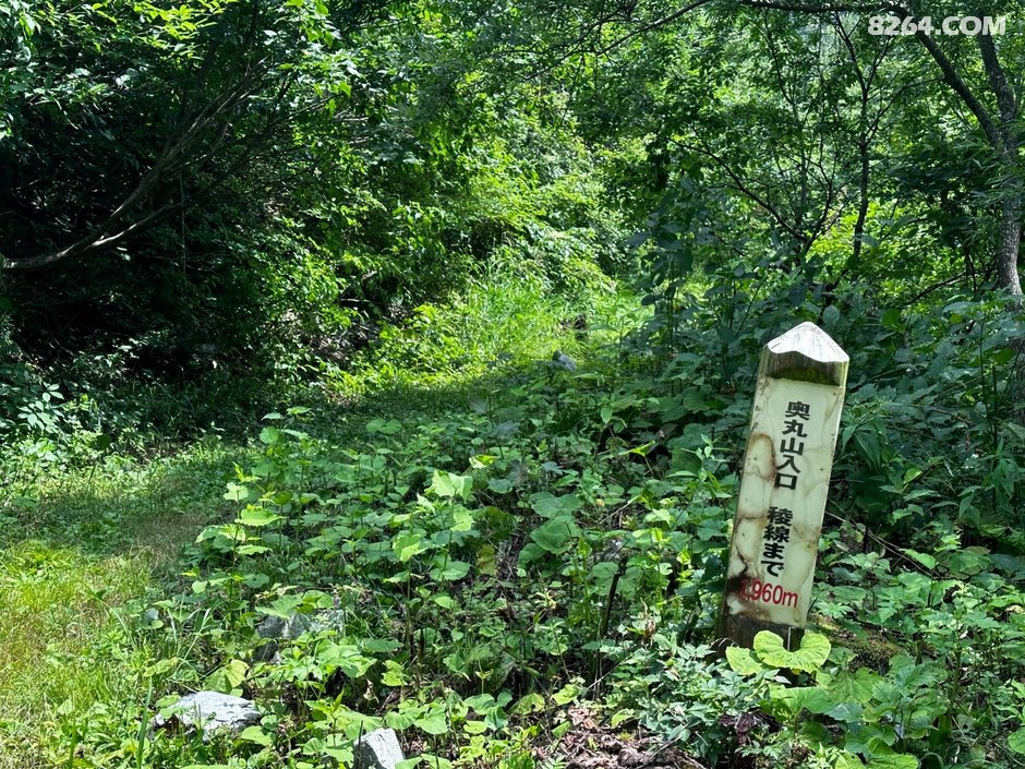 稍稍休整之后, 背包继续上路。不久来到奥丸山登山入口,右转进山,爬升了一段发现山坡上路迹渐渐被植被吞没。奥丸山算是冷僻线路, 地图标注登顶需要 3.5 小时。我实际耗时3小时50分。应该是重装、找路、核对轨迹、半途休息花了不少时间。