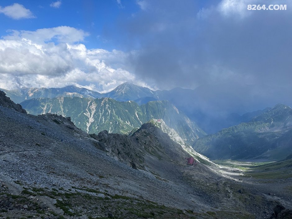 在新穗高进山登记时,改了进山线路,走笠ヶ岳、双六岳方向,中间右转登奥丸山(Mt Okumaruyama), 为了获取拍摄穗高连峰的制高点机位,然后下山至枪平小屋营地(Yaridaria goya)