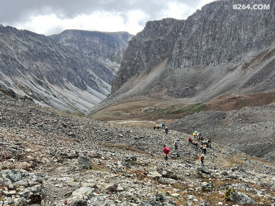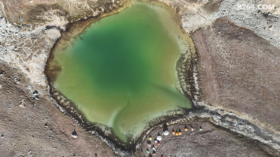 开始有色彩了,远远看到营地,实际上下山还下了很久。今晚住的是切坛营地,海拔是4300米