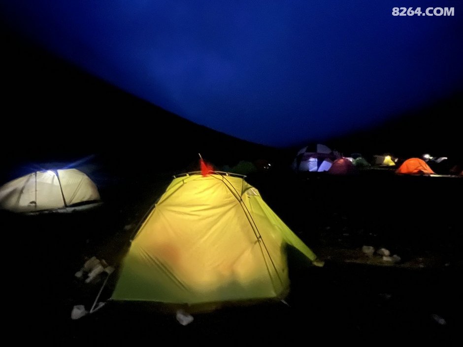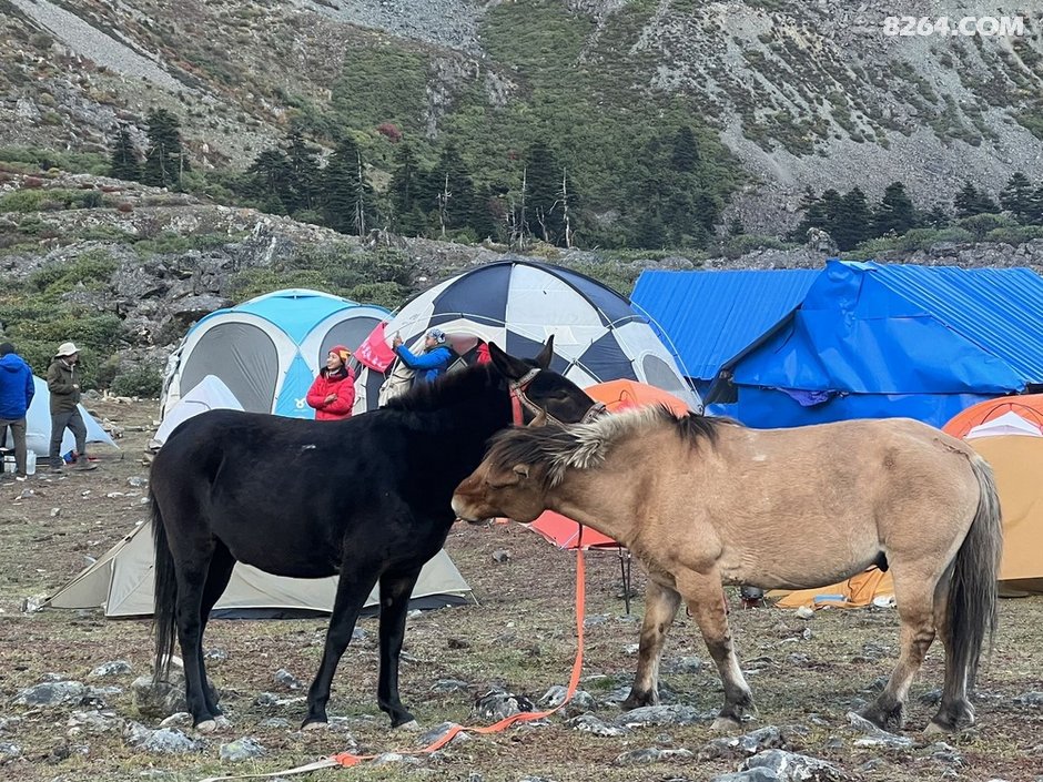 第一天早上8.18 分开始起步,下午 13.10到达第一个营地一字泵营地4300 海拔,全程7公里左右,我们到了营地搭了帐蓬后下雨,一直下到后半夜,但天黑了还有不少 驴友冒雨进山,听说是下午才起步的,到了营地都在黑夜里找自己的队伍找自己的驮包,后半夜雨停了,周围才安静下来。