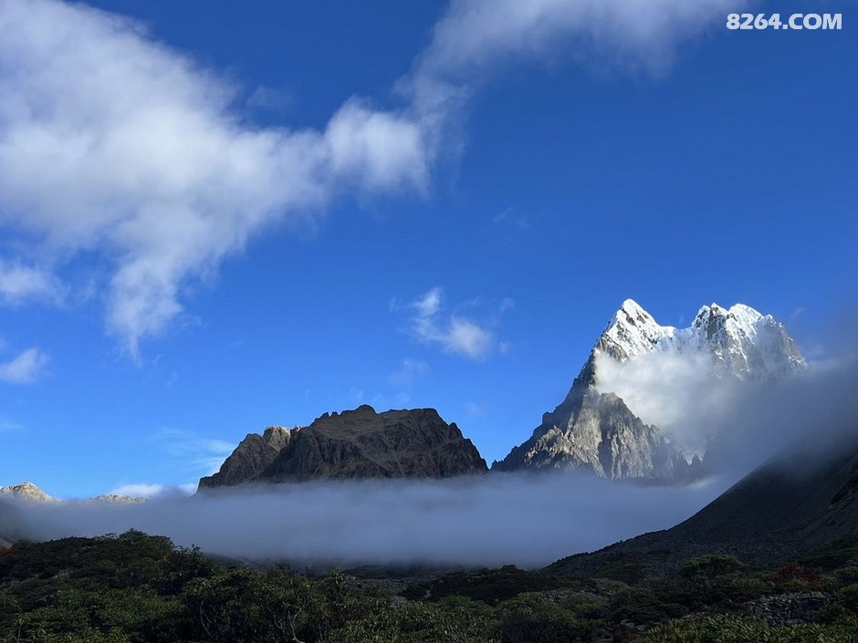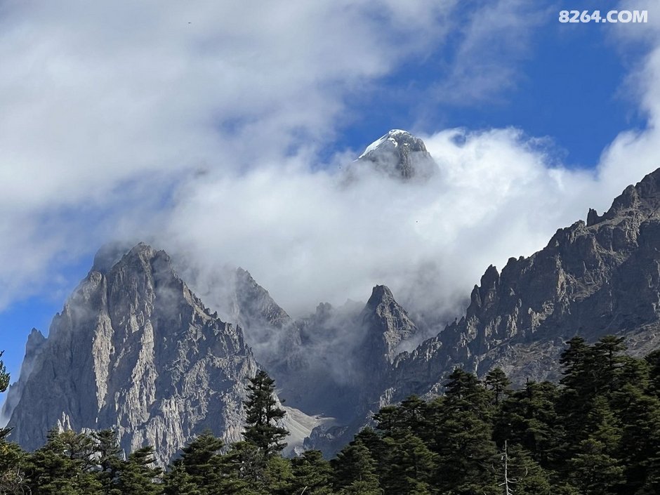 犹抱琵琶半遮脸,藏在深闺里的雪山羞答答地在偷看远道而来的客人!