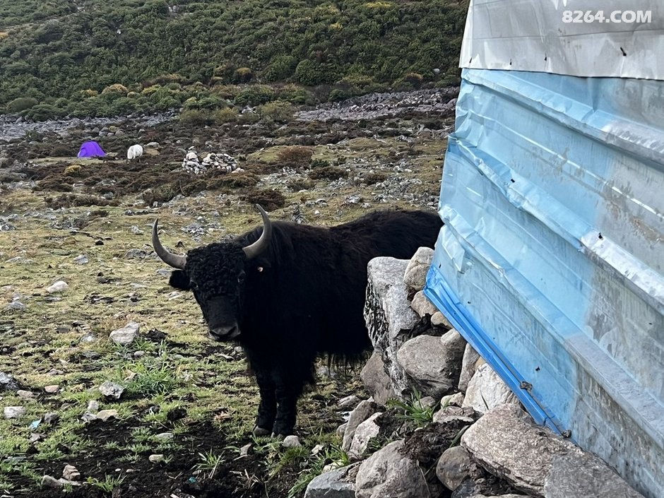 原本就在4600海拔扎营过了一夜了,所以拔高300多米翻了一个连摩托车都能上的垭口不算难,下坡过了几个叫不出名的海子,中午12点就到了放下我们所有队友驮包的地方,也不知道为什么不像可以扎营的地方,到处是所谓的小木屋,其实就是可以让人和牛一起住的破旧不堪又非常臭牛屎味的铁皮房,房屋周边坑坑洼洼无处适合扎营。