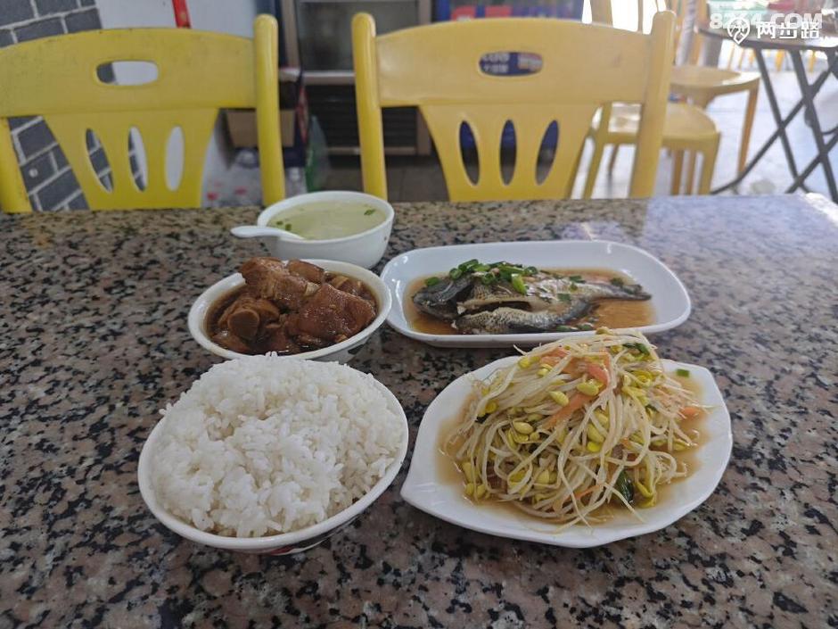 十二点到石梅湾北边村镇,先吃饭,沙县小吃。干辛苦活,吃五花肉。