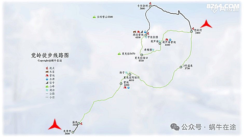 从上图可以看到,党岭主要徒步线路可以分为两条;一是道孚至党岭的穿越线;二是所谓的三湖连穿的看海线。至于单独一条还是两条合并,只是走法不同。我本来只是把党岭作为备选,始终对所谓的网红打卡地有些抵触,再加上后来联系几位发帖走看海线的,感觉不靠谱甚至反感,就赌气般选择了从龙普村到党岭的穿越线。
