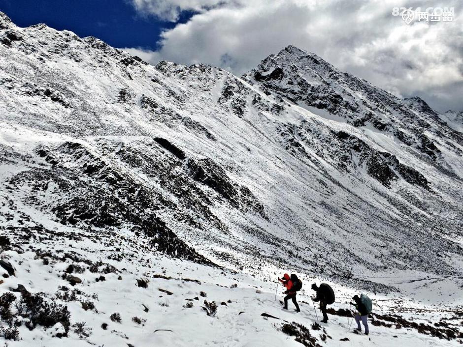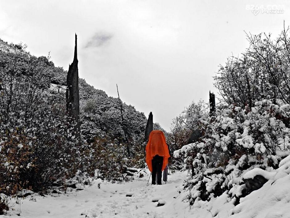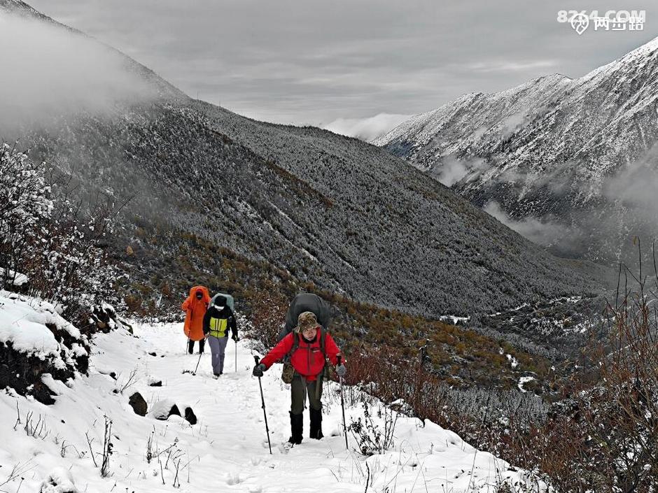 他们昨天从成都租车到丹巴,丹巴租车送到龙普,夜宿龙普藏民家,今天上午冒雪进山,毫不犹豫。途中闲聊,才知道他们都是走过多条高原长线,平时还马拉松越野跑的神级人物。比如那位带子,此行目的是参加四姑娘山越野赛,党岭穿越就是热身而已。知道同伴如此后,信心更是大增,倒不是因此有了依靠,相反,觉得这些人不会拖后腿,惹麻烦。当然,这话也只是在心里想想而已。
