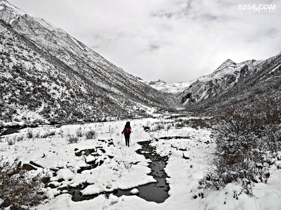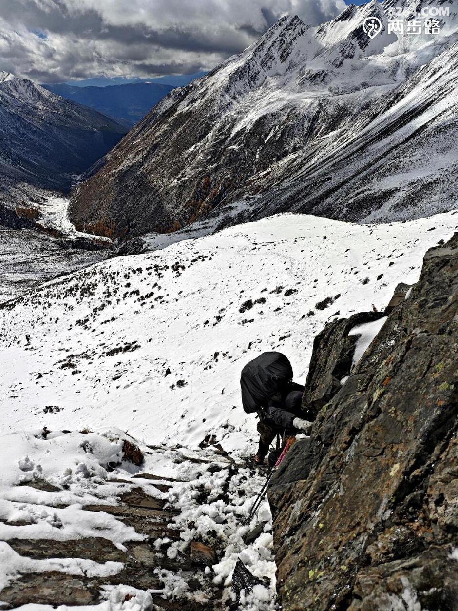 后来才知道这条穿越线,也是红色线,当年红四方面军翻越夏羌涅阿就是走的这条线,是红军长征走过最高、最险、最难的雪山。踩着先辈足迹翻山越岭,自然豪情万丈,所以即使又一次SOLO,也没有犹豫。
