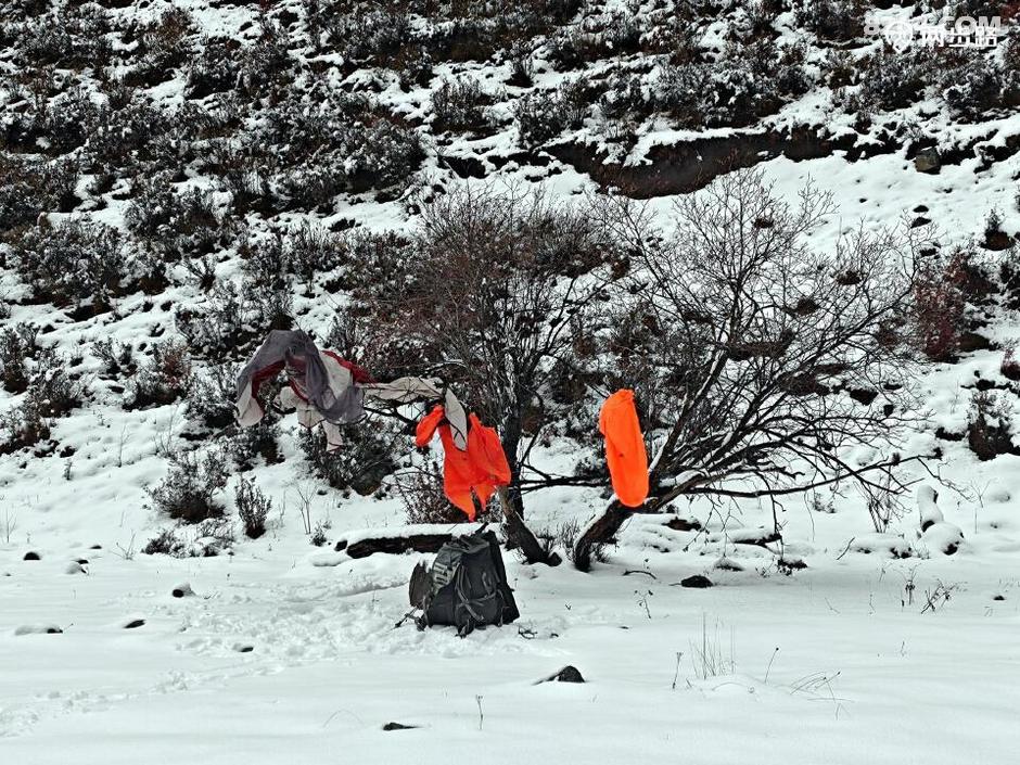 此行我和王总独帐,神仙和带子合帐。我刚放下背包时,听到神仙问带子,怎么手这么冰?你怎么回事,那你先坐下来休息一会。然后神仙过来要我帮她把帐篷搭起来,说带子可能有些着凉了。我说年轻人没事。一抬头,发现那边的带子已经呈趴下状态,还跟神仙开玩笑,她真不怕冷啊。但忽然觉得不对劲,走过去,喊都没反应,拉扯一下还是没反应,我暗暗心惊,这不会是失温了吧?