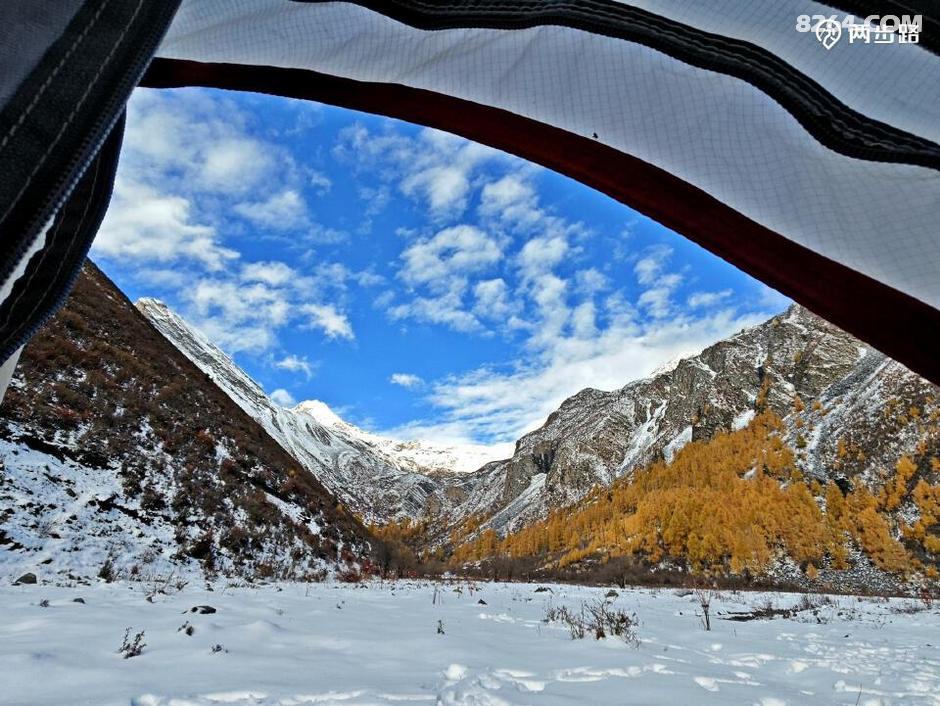 (搭好帐篷,此时的营地四周,一场风光盛宴摆开。矮小的帐口也无法遮蔽这壮观而艳丽的风景。)