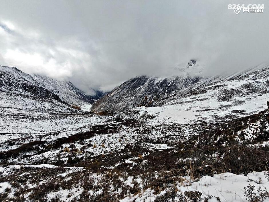 此行大概过程:10月23日武汉动车,此日早晨到成都东,当日到大巴至康定。因天气和约伴原因,决定先去党岭,走道孚龙普穿党岭再加党岭三湖连穿线路。10月25日中午到龙普村,单人进山,下午四点因雨临时扎营3800路边,夜降大雪。10月26日看满山雪雾,担心一人翻垭口危险,就决定下撤,途中遇王总三人,又结伴回头。当日中午在4100营地扎营。10月27日中午翻夏羌涅阿垭口,因队友小意外提前于4300临时扎营。10月28日下午出山,历时四天三夜完成龙普至党岭的穿行。