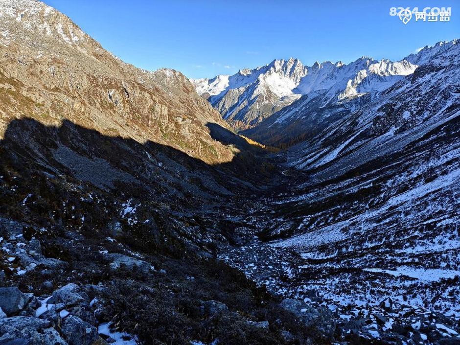 (回望龙普沟,气势渐渐辽阔。上图中间平地是4400营地,条件也不错。)