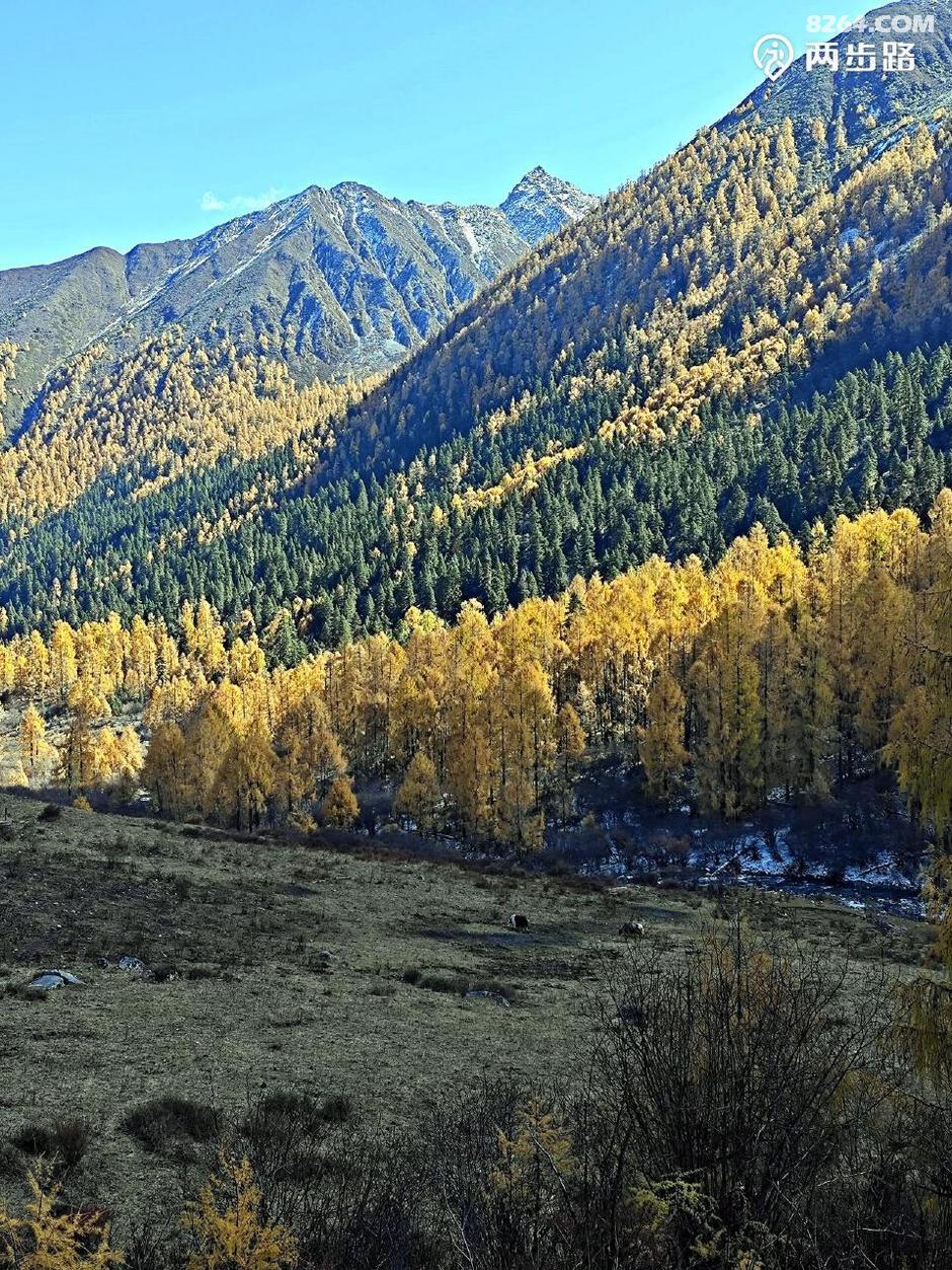这一路金秋时光更是对我们的额外恩赐。川西有彩林,党岭有黄杉。这金黄,漫山遍野,热烈闪亮,令人叹为观止。