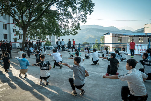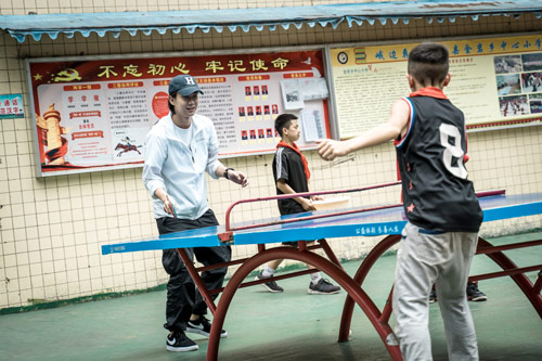在中午时分,放映队赶到了金岩小学。孩子们有打乒乓球的,有踢足球的,校园中一派生机勃勃的景象。队员们随即了解到,这里的很多体育设施都是“体彩乐善基金”捐赠的。近年来,“公益体彩 快乐操场”活动在四川,为很多学校送去了体育器材和公益体育课,大大改善了学校的体育教学环境。