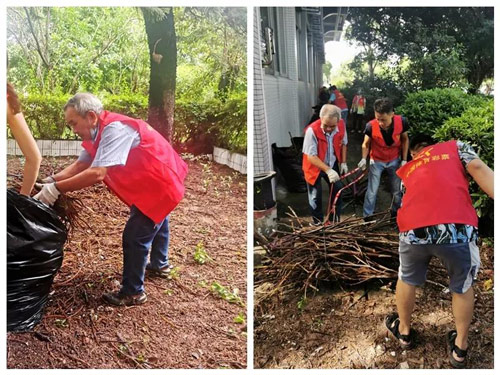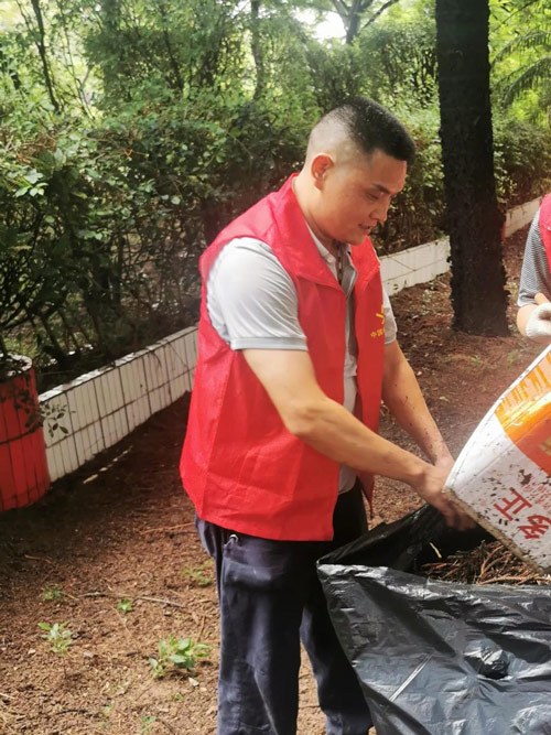 位于横栏镇的裕祥工业区4418040105实体店代销者黄策伟,不带手套,手当爬犁,挖起地上的混着泥土的树叶,很多刺的树枝,一分钟装起满满的一袋,扛起就走,暴风一样的超高效率。当问起他为什么体力这么好,才知道他是一名退伍军人,他说:“我以前保卫祖国南大门,习惯于有任务不扭捏,凡事速度。” 还有很多熟悉的身影,4418018057麦永青、4418030125顾加宏、4418018441万清勇,均为党员,公益先锋,助学时捐款捐物,干活时毫不含糊,身体力行的奉献着自己的青春。4418018523禤桥洋,4418030537陈友淳,更有两名代销者在一线销售体彩,无法抽身前来,分别请同为党员的父亲、丈夫来积极参与。大家表示对体彩事业有了更强的责任感与使命感。