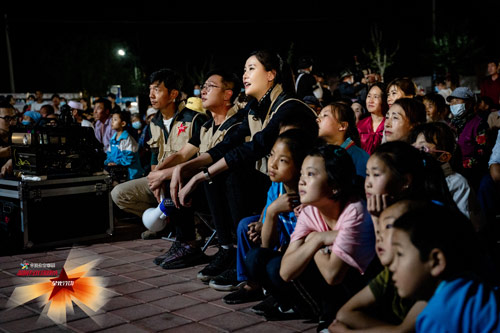 历经一天的奔走,在乡亲们的共同支持下,放映队终于找到了124名村民代表。为了将易地搬迁成果更形象地展现出来,放映队员们将观影座位按照124个村的地理位置,以地图形式呈现在了广场上。夜幕低垂,银幕亮起,在温柔的光影间,乡亲们跟随电影《闽宁镇》重温着二十年间村子的蜕变历程,也在心里品味着如今幸福的味道。