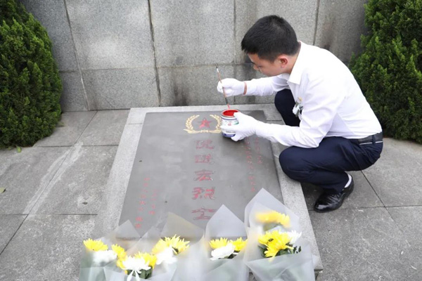 “在28位烈士中,5人是珙县本地人。剩下的23位烈士是随刘邓大军解放西南的,这23人都是之前没有找到家属的。从3月初到现在一个月的时间,我们通过寻找,找到了其中吴生友、王友华、倪进宏、桑良永四位烈士的家属,和他们的家人取得了联系。”任大海告诉记者,4月1日,在新的烈士陵园里,任大海带着十几位学生和机关工作人员进行革命烈士事迹宣讲,为墓碑描红,并献花默哀,整个过程还进行了“云祭扫”,让烈士家属可以视频观看。 一个多月的努力,终于为烈士们吹响了回家的“集结号”,烈士魂归故里,那些家属喜极而泣,外人不知道的是,全国体彩3月11日开市了,而当时恰好是任大海“寻亲”最忙的时候,再加上疫情影响,足球赛事停摆,任大海的体彩实体店销量从原来二十几万跌落到只有两万多。尽管如此,任大海说:“一切值得了!等疫情好转,我有信心再成为全县销量冠军。我也会号召我身边更多的体彩人一起参与到公益活动中,参与到帮助烈士寻找亲人的活动中来。”(杨天婴)