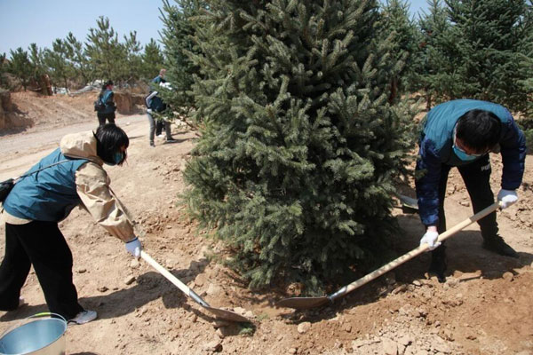 上午10时,山西省体彩中心百余名党员、职工来到阳曲县大盂镇营响未来千曲国际教育营地开展义务植树活动。植树现场,大家热情高涨,积极行动,三人一组,挖坑、扶苗、填土、培实、浇水,整个植树现场繁忙而有序,相互配合干劲十足。经过大家一上午的劳动,100棵挺拔的树苗在绿化带里“安家落户”,为这片山坡添上了一片新绿。
