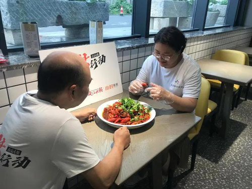 我们请到了杭州知名餐饮店好食堂1987的主理人马坤山做助梦使者,教沈新做一道地道的武汉小龙虾,此外,通过体彩助梦基金,还为她准备了一个蒸汽烤箱和一套厨具,让她日后能为家人做出更多的美食。 吃到熟悉的味道勾起对武汉过往的回忆 当记者赶到好食堂时,先到一步的沈新,已经拉着“师傅”马坤山叙起了旧。“马师傅,你家的店我吃过好几次,味道真的很好,今天你可不能藏私啊,得教我点真功夫才行。” 看着学艺心切的沈新,马坤山二话不说,抄起准备好的小龙虾就向后厨走去。“小龙虾要先过油炸一遍,这样可以让肉质更紧实,这一步油温一定要高,才能锁住里面的水分。”马坤山嘴里说着各种诀窍,手上的动作却一点不慢。半个小时不到,一盘红亮鲜香的小龙虾就出锅了。