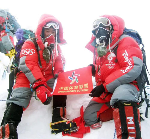 2008年5月8日,“体彩旗帜”随北京奥运会“祥云”火炬一起登顶珠峰 中国登山运动缔造的辉煌,名扬天下,世人仰望。在辉煌背后,中国体育彩票既是架梯者,也是同路人。2008年,中国体育彩票随北京奥运会“祥云”火炬一起登顶珠峰。如今,登顶队员在珠峰之巅展示一面印有“中国体育彩票”字样以及体育彩票LOGO的小红旗的照片,成为登山人和体彩人的共同回忆。可以说,这面“体彩旗帜”陪伴了五星红旗、奥运五环旗和北京奥运会会徽旗在世界之巅的迎风飘扬。这张照片作为体育精神与体彩精神携手同行、共攀高峰的见证者,始终珍藏在体育人和体彩人心间。 多年来,在鼎力资助包括登山运动在内的中国竞技体育事业的同时,体育彩票公益金还广泛支持全国新年登高健身大会、各地登山登高群体活动等,助力我国登山事业发展迸发取之不尽、用之不竭的生机与动能。 体育荣耀,体彩添彩。这是一次伟大的登顶 ,这里有一座看不见的桥。2020年5月27日,在中国登山缔造又一荣耀的高光时刻,体育彩票一如既往,躲在闪光灯的背后,却发出别样的光芒。